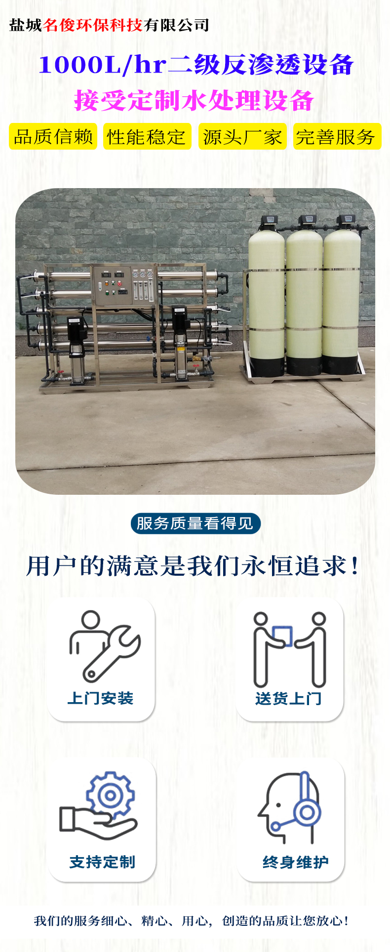 鹽城名俊環(huán)??萍加邢薰局饕a(chǎn)反滲透純水設(shè)備、軟水器、工業(yè)去離子水、超純水去離子(EDI)等系統(tǒng)設(shè)備。并銷(xiāo)售水處理系統(tǒng)儀表、水泵、管閥件、濾芯、濾料、及離子交換樹(shù)脂等配給及設(shè)備維護(hù)保養(yǎng)。