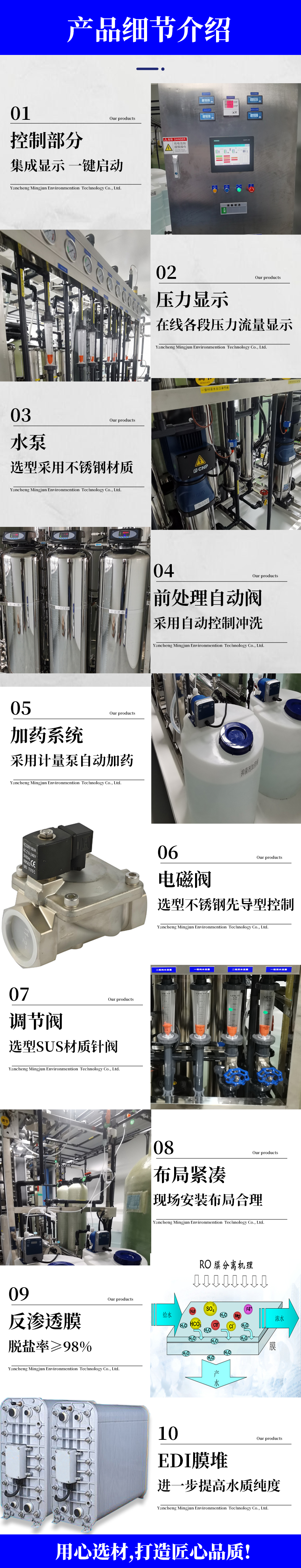 鹽城超純水、去離子水設(shè)備制造商鹽城名俊環(huán)??萍加邢薰?,工廠位于江蘇鹽城市鹽都區(qū)大縱湖,是超純水、去離子水設(shè)備的生產(chǎn)廠家。作為鹽城水處理設(shè)備制造商,我們忠于水處理設(shè)備技術(shù)的研發(fā)、生產(chǎn)及銷售安裝等服務(wù),超純水、去離子水設(shè)備設(shè)備廣泛運用于醫(yī)藥、玻璃清洗、化工、涂裝、汽車、電子、鍋爐補(bǔ)水等行
